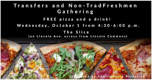 FREE pizza at The Slice - Welcome Gathering for New and Current Transfers and Non-Traditional Freshmen Students
