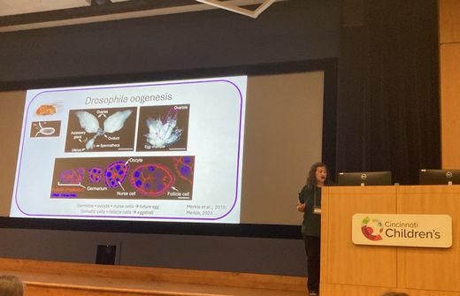 Congratulations to Dr. Julie Merkle, Associate Professor of Biology, on giving an invited talk at the 2025 Midwest Regional Meeting of the Society for Developmental Biology at the Cincinnati Children's Hospital in Ohio on September 21. Dr. Merkle's presentation was entitled, "To be or not to be: unraveling cell fate decisions in the Drosophila germline." |