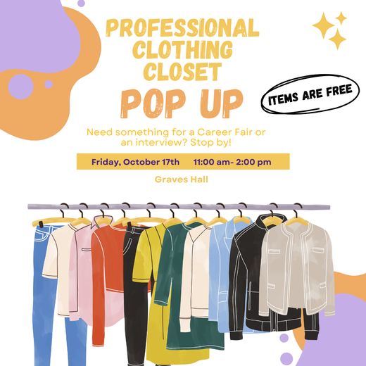 Need something professional to wear to next week's career fair? To an upcoming interview? For a class presentation? Stop by today and check out our Professional Clothing Closet!